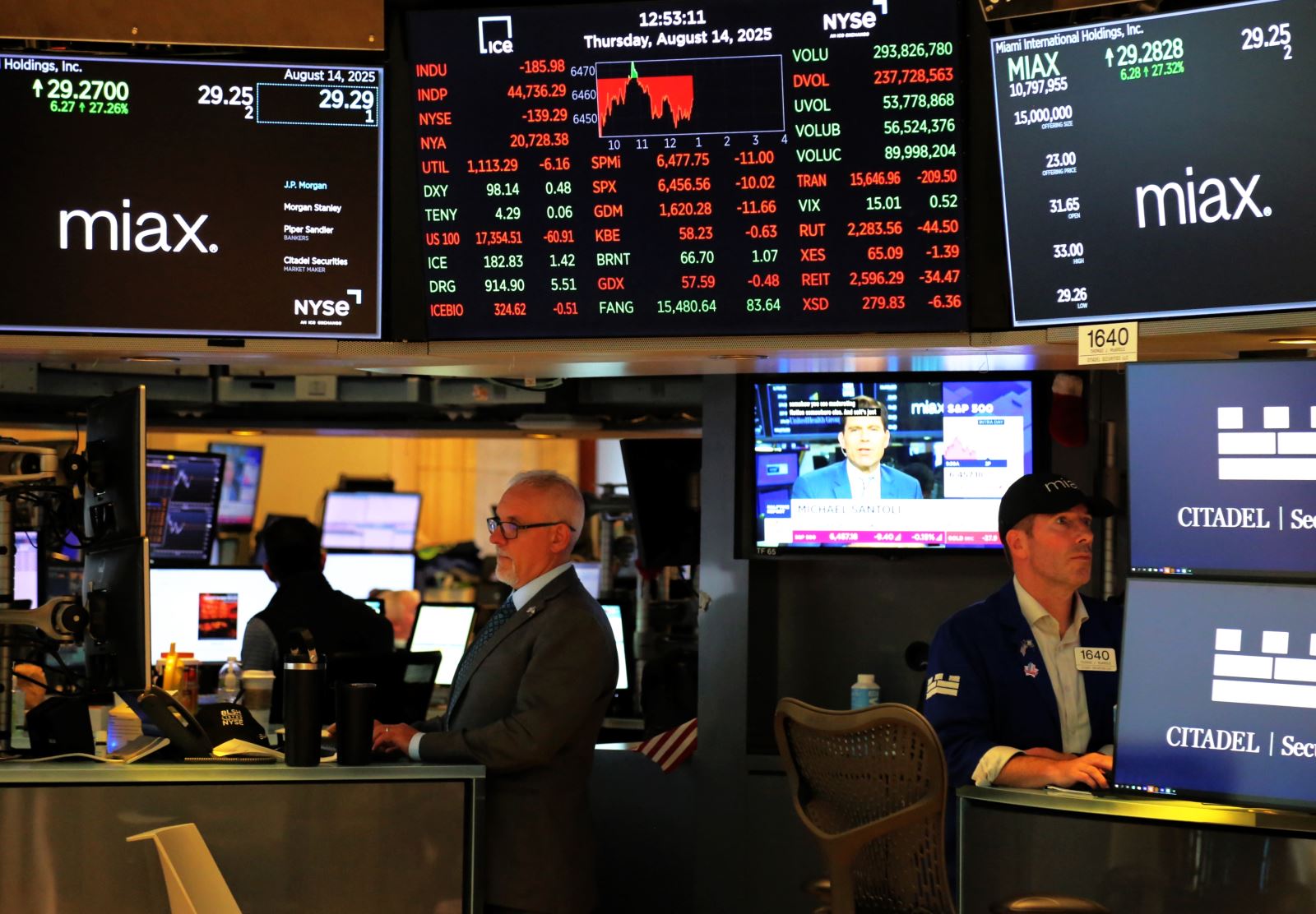Giao dịch trên thị trường chứng khoán New York, Mỹ. Ảnh: THX/TTXVN