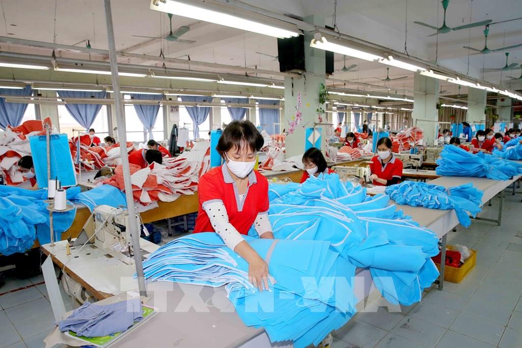 Hoạt động tại Công ty cổ phần May Chiến Thắng. Ảnh: Phương Hoa - TTXVN