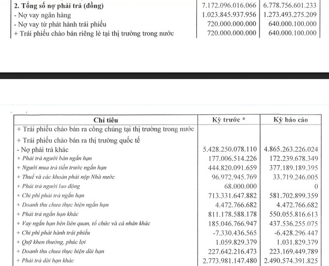 Nợ vay từ phát hành trái phiếu cải thiện từ 720 tỷ đồng về 640 tỷ đồng. Dư nợ này đến từ 5 lô trái phiếu THVCH2129001, THVCH2129002, THVCH2129003, THVCH2129004 và THVCH2229001.