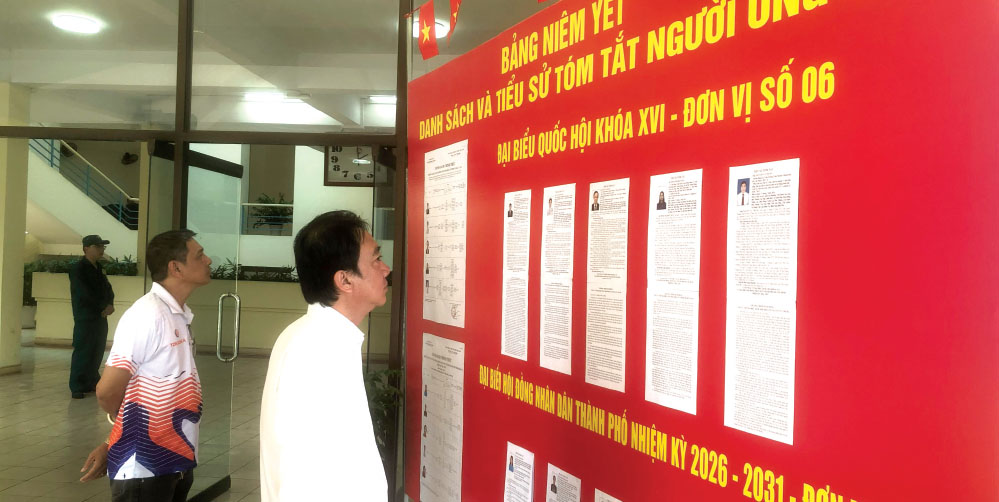 Cử tri tìm hiểu thông tin về ứng cử viên đại biểu Quốc hội khóa XVI tại đơn vị bầu cử số 6 ở TPHCM.