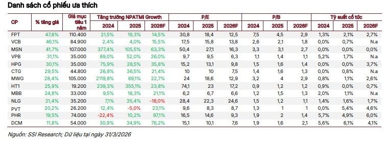 Ở nhóm tiêu dùng, triển vọng vẫn tích cực nhờ chiến lược mở rộng hệ thống bán lẻ giúp gia tăng thị phần, cùng với các chính sách hỗ trợ như nâng ngưỡng thu nhập chịu thuế từ đầu năm 2026. Tuy nhiên, đà tăng của giá dầu gần đây có thể phần nào ảnh hưởng đến tâm lý chi tiêu của người dân.