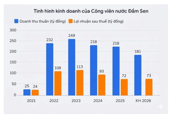 Công viên nước Đầm Sen cho biết nguyên nhân chính đến từ điều kiện thời tiết không thuận lợi trong nhiều tháng cao điểm, ảnh hưởng trực tiếp đến lượng khách. Bên cạnh đó, bối cảnh kinh tế khó khăn khiến người tiêu dùng thắt chặt chi tiêu cho hoạt động giải trí. Áp lực cạnh tranh gia tăng cùng xu hướng chuyển dịch sang các loại hình vui chơi mới cũng tác động tiêu cực đến hoạt động kinh doanh. Ngoài ra, một số hạng mục, trò chơi cần thời gian bảo trì, nâng cấp; các chương trình kích cầu, khuyến mãi triển khai nhưng hiệu quả chưa như kỳ vọng. Dù kết quả kinh doanh suy giảm, doanh nghiệp vẫn dự kiến chi trả cổ tức năm 2025 bằng tiền với tỷ lệ 40% vốn điều lệ, tương đương hơn 48 tỷ đồng.