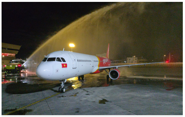 Tàu bay Vietjet được chào đón với nghi thức vòi rồng tại Sân bay quốc tế Ninoy Aquino