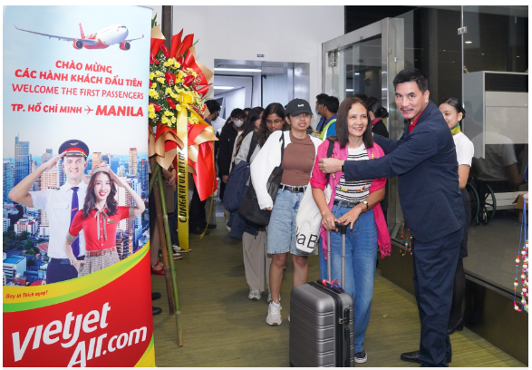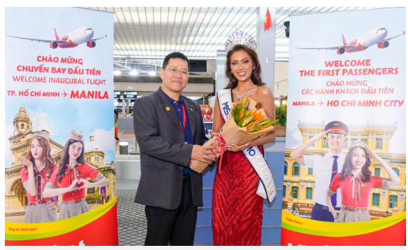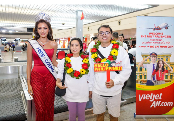 Đường bay TP.HCM - Manila khai trương trong sự chào đón và chúc mừng của người dân, du khách tại hai địa phương. Sự kiện còn đặc biệt có sự tham gia của Hoa hậu Miss Cosmo 2024 Ketut Permata Juliastrid Sari, Miss Cosmo Philippines 2025 Chelsea Fernandez, cùng chào đón những hành khách đầu tiên của chuyến bay, mang đến không khí lễ hội tưng bừng và đầy hứng khởi.