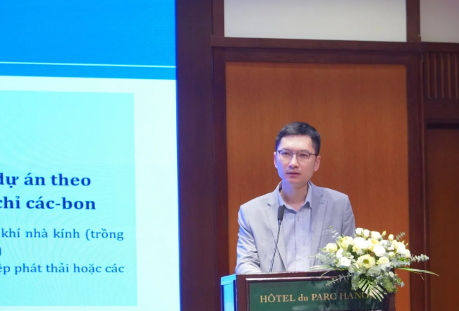 Ông Phạm Nam Hưng, Phòng Thị trường carbon, Cục Biến đổi khí hậu (Bộ Nông nghiệp và Môi trường) cho biết, nếu cơ sở phát thải vượt mức cho phép sẽ phải mua thêm hạn ngạch theo quy định pháp luật. Ngược lại, nếu giảm phát thải hiệu quả, doanh nghiệp có thể tiết kiệm hoặc bán lại hạn ngạch dư thừa để thu lợi nhuận. Ảnh: Trung Nguyên.