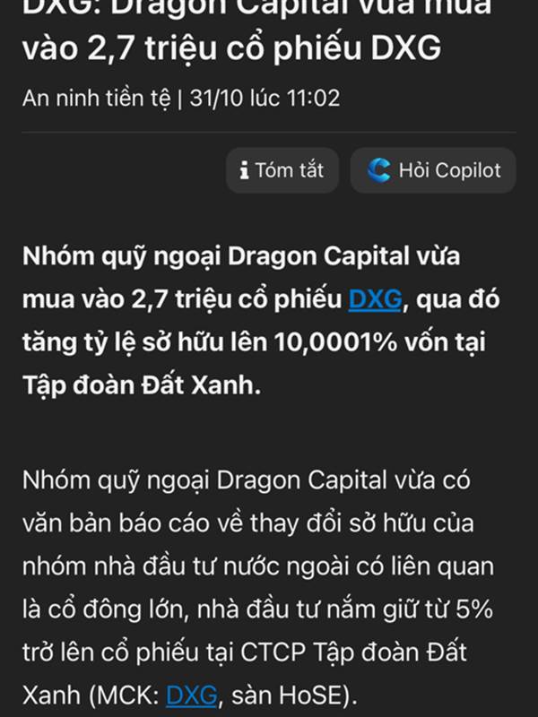 DXG: Báo cáo thay đổi sở hữu vượt ngưỡng 1% của nhóm nhà đầu tư nước ngoài