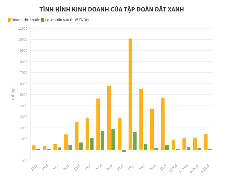 Lũy kế cả năm 2025, Đất Xanh ghi nhận lợi nhuận sau thuế hợp nhất đạt 574 tỷ đồng, tăng nhẹ so với năm 2024.
