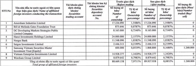 Sau giao dịch nêu trên, nhóm quỹ Dragon Capital đã tăng sở hữu cổ phiếu DXG từ gần 88,7 triệu cổ phiếu lên hơn 89,9 triệu cổ phiếu, tương đương tỷ lệ sở hữu tăng từ 7,9711% lên 8,0852% vốn điều lệ tại Tập đoàn Đất Xanh.