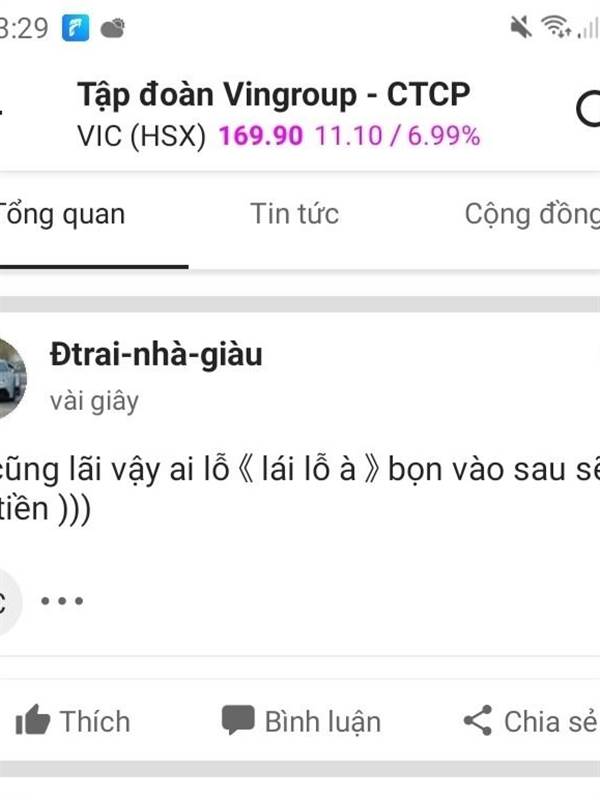 Phản hồi bài viết Thuần MÕM mới hô mua VIC trên livestream ăn 3 cây...
