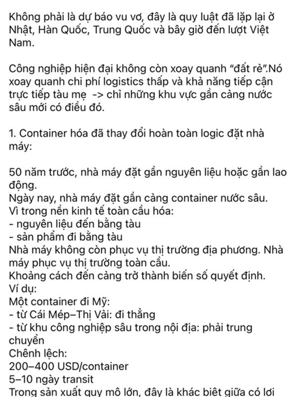 Anh Thợ Săn IDC nó ngon ở chỗ vị trí đất KCN đẹp, gần cảng nước sâu, sân bay, cao tốc -> tối ưu chi phí logistic cho Khách thuê. KCN đang phát triển theo xu hướng xanh, bền vững khi kết hợp với Vin.