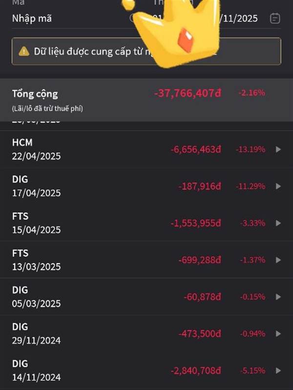 Bửu Tài Trương thanh mình cầm con CEO Lãi gần 20% không bán , giờ lỗ ngược 44%. Năm 2024 tới t5 2025 mình lỗ có 37tr mà từ giữa năm 2025 tới giờ cứ ôm bđs lỗ gần 200tr cay v. Đợt thuế quan thoát được mà không lỗ bằng cuối...Thêm