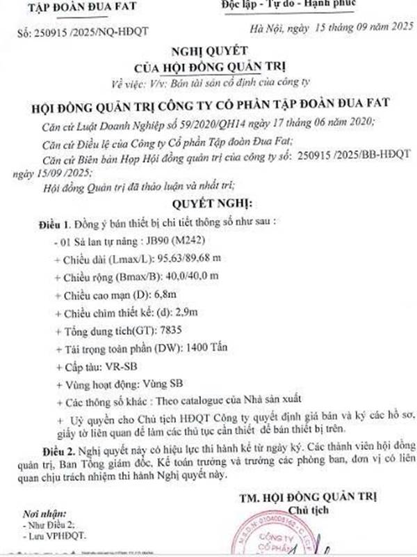 Đố các bác biết tại sao 15/9 lại có văn bản nghị quyết HĐQT v.v bán tài sản cố định của cty ???