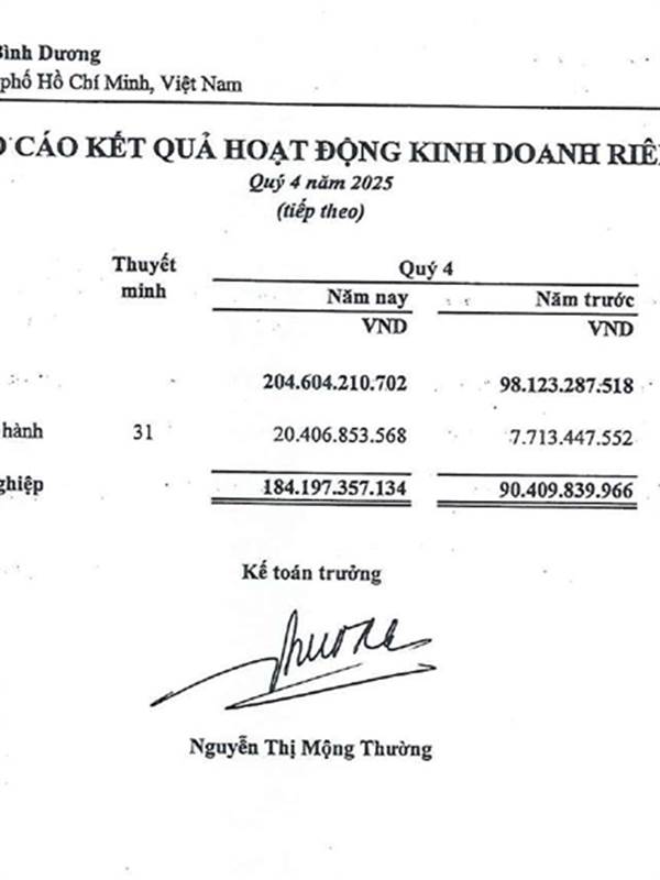 Quý 4 tăng hơn 100% so với cùng kỳ năm ngoái