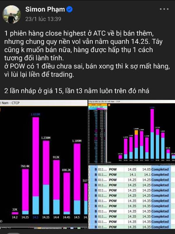 Chip mình bám theo cổ phiếu để mình GD, và cách đánh hiện tại của POW phù hợp với cách mình nhìn. Lãi thì luôn được chốt, nhưng số lượng hàng thì sẽ biến động ở mức độ nhẹ