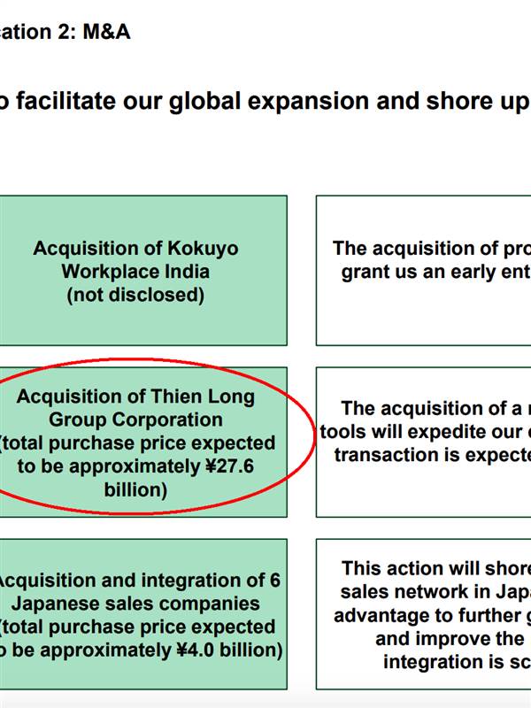 Khéo mai mốt phải đọc bctc của Kokuyo thường xuyên luôn quá. Thương vụ 27.6 tỉ yên nhằm mở rộng thị trường ASEAN.