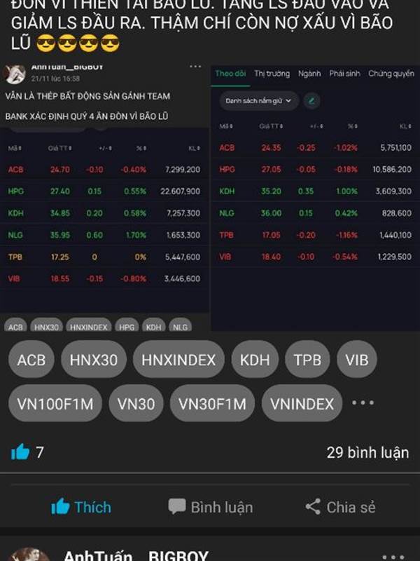 AnhTuấn__BIGBOY vậy thì chủ yếu sẽ rới vào họ vin thôi ô . Vin nhiều index nhiều chưa chỉnh mấy . Chứ bank giá đã rẻ rách rồi kéo mãi mới lên tí. chỉnh tiếp thì thì méo bh mới x3 hay x5!!