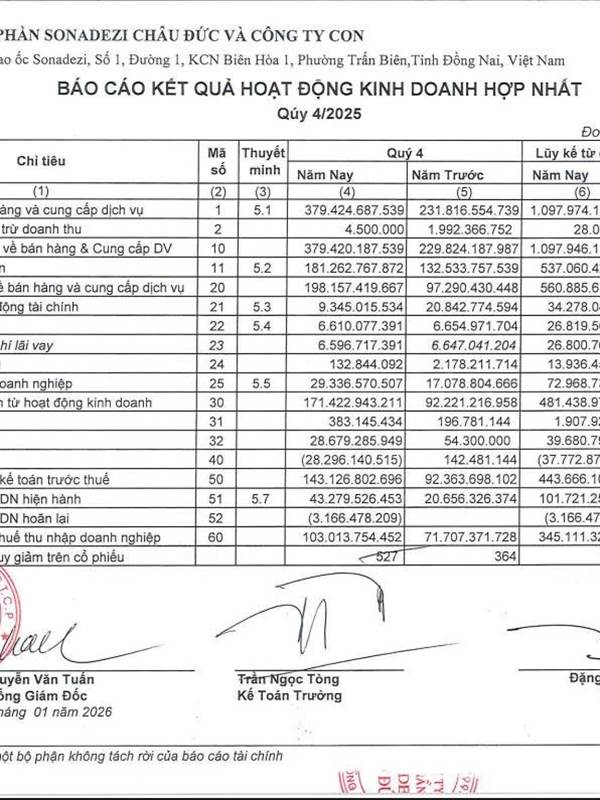 SZC CÔNG BỐ LỢI NHUẬN QUÍ 4/2025 TĂNG TRƯỞN MẠNH, LNST CẢ NĂM 345 TỶ ĐỒNG ==>VỚI KẾT QUẢ SZC, ĐỊNH GIÁ SZC VÀO KHOẢN 45