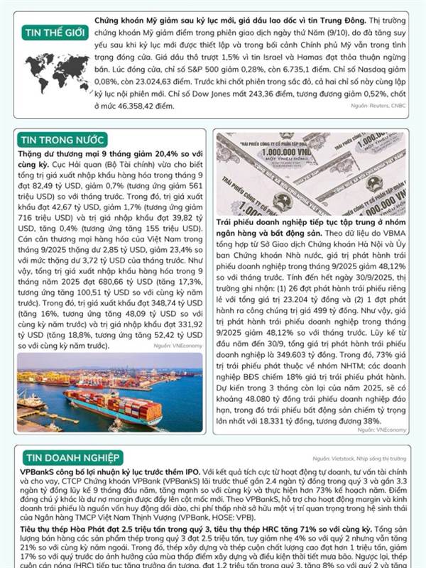 Thị trường chứng khoán Việt Nam ngày 9/10 tiếp tục duy trì diễn biến tích cực sau chuỗi thông ...Thêm