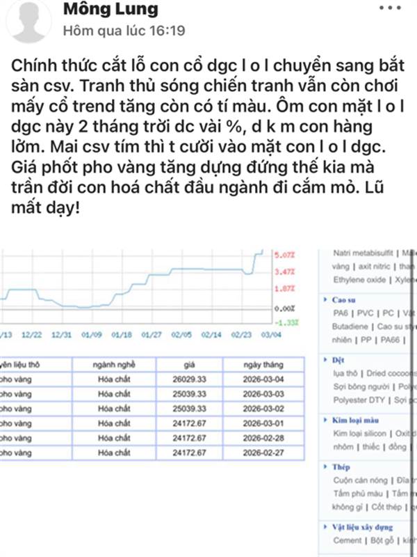 Phản hồi bài viết Ông nào hôm qua bán DGC quay sang múc CSV đâu nhỉ ...
