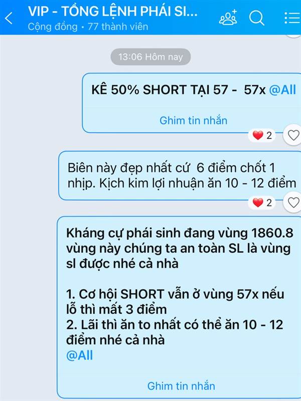 Phái sinh thủng hỗ trợ 1857 team chỉ SHORT