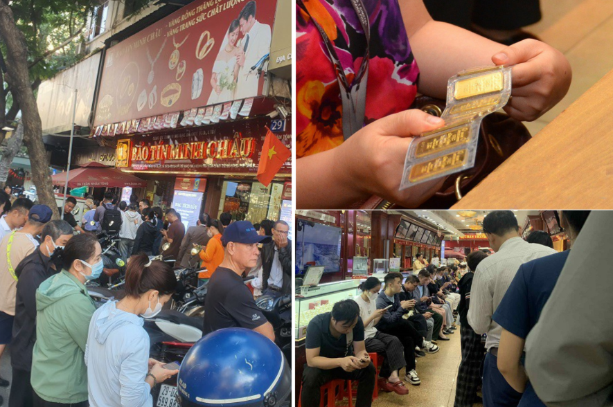Những tháng gần đây, giá vàng miếng SJC trong nước liên tục lập đỉnh, có lúc trên thị trường chợ đen, giá vàng vượt 180 triệu đồng/lượng vào ngày 17/10. Người dân đổ xô đi mua, xếp hàng dài tại các tiệm vàng vì sợ “ngày mai giá lại tăng”.