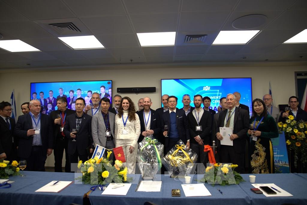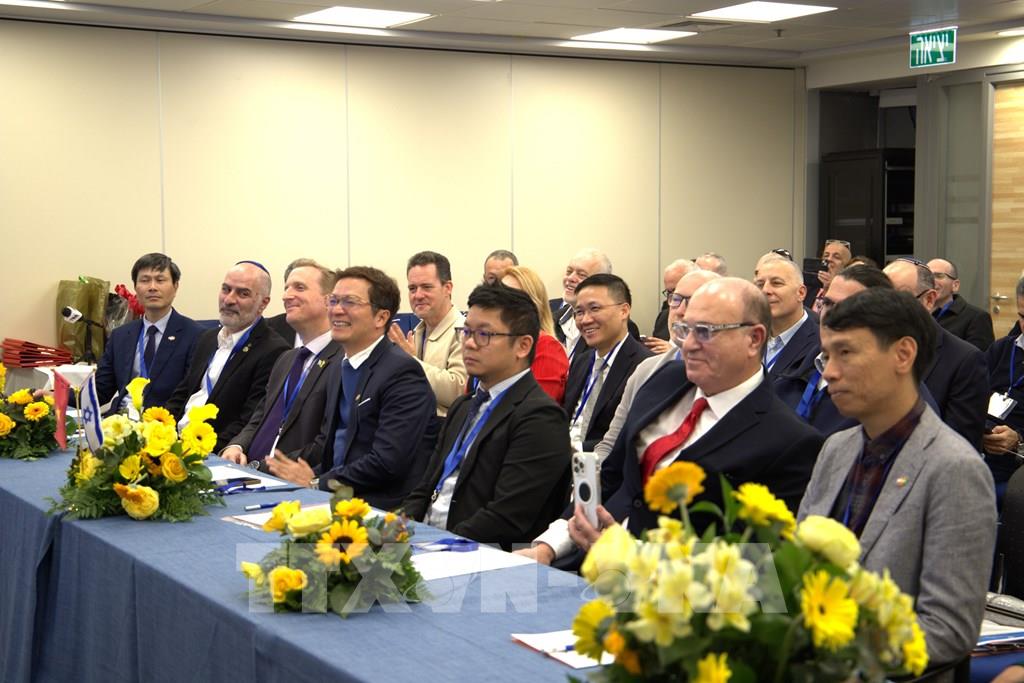 Đại diện Bộ Kinh tế và Công nghiệp của Israel, cùng các đối tác công nghệ, doanh nghiệp và tổ chức đổi mới sáng tạo hàng đầu của Israel, tham dự buổi lễ. Ảnh: Thanh Bình - PV TTXVN tại Israel