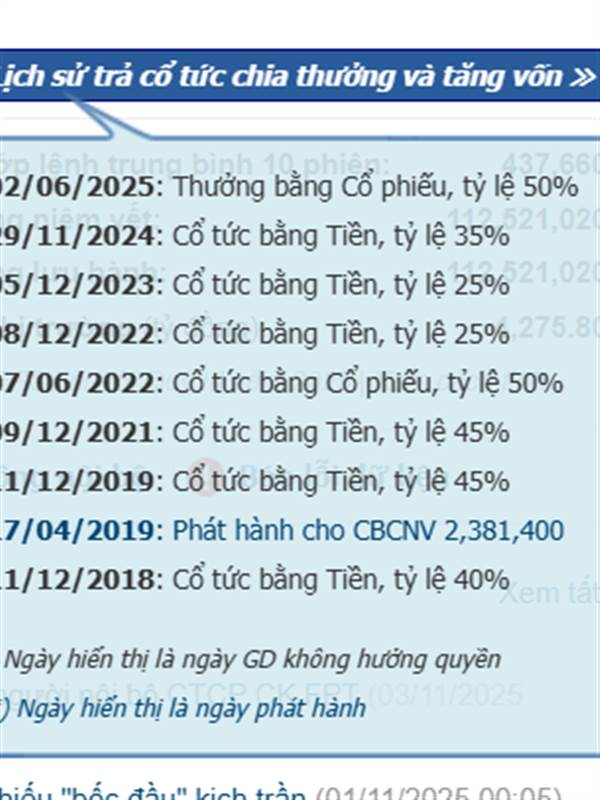 Dự kiến ngày 2/12 là ngày đăng ký cuối cùng nhận cổ tức 35%.