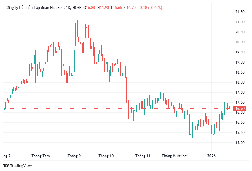 Trên cơ sở đó, báo cáo định giá lần đầu do FPTS công bố đã đưa ra khuyến nghị bán đối với cổ phiếu HSG, với giá mục tiêu 13.500 đồng/cổ phiếu, thấp hơn khoảng 20,6% so với thị giá tại ngày 15/1/2026.