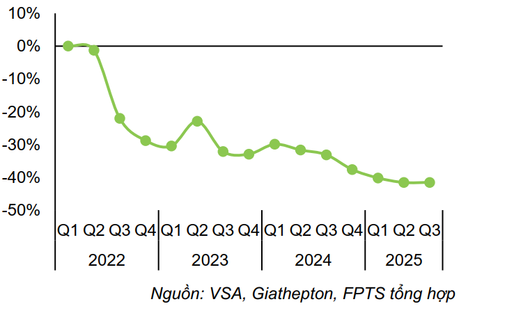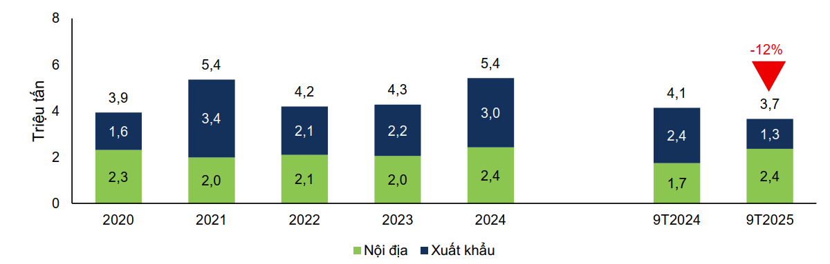 Tuy nhiên, theo FPTS, lợi thế về quy mô của Hoa Sen đang chịu áp lực lớn trong bối cảnh ngành tôn mạ rơi vào tình trạng dư cung kéo dài. Giai đoạn 2020-2024, tổng nhu cầu toàn ngành chỉ đáp ứng khoảng 68% công suất thiết kế, phản ánh mức độ cạnh tranh ngày càng gay gắt giữa các doanh nghiệp. Áp lực này được dự báo sẽ gia tăng khi một số dự án mới trong ngành đi vào hoạt động trong giai đoạn 2026-2027, khiến thị trường khó tránh khỏi cuộc đua về giá và biên lợi nhuận tiếp tục bị thu hẹp.