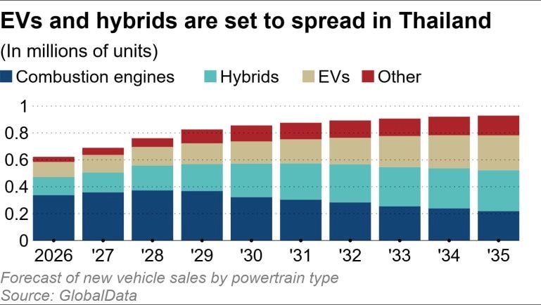 Chính phủ Thái Lan sẽ loại bỏ khoảng trợ cấp lên đến 150.000 baht (4.790 USD) cho việc mua xe điện trong năm nay, và hạn ngạch sản xuất trong nước cần thiết để nhận trợ cấp cho các nhà sản xuất xe điện sẽ trở nên nghiêm ngặt hơn nữa. Năm nay "sẽ là một bài kiểm tra thực sự xem liệu sản phẩm của chúng tôi có được thị trường Thái Lan chấp nhận hay không, ngay cả khi không giảm giá," vị giám đốc điều hành cho biết.