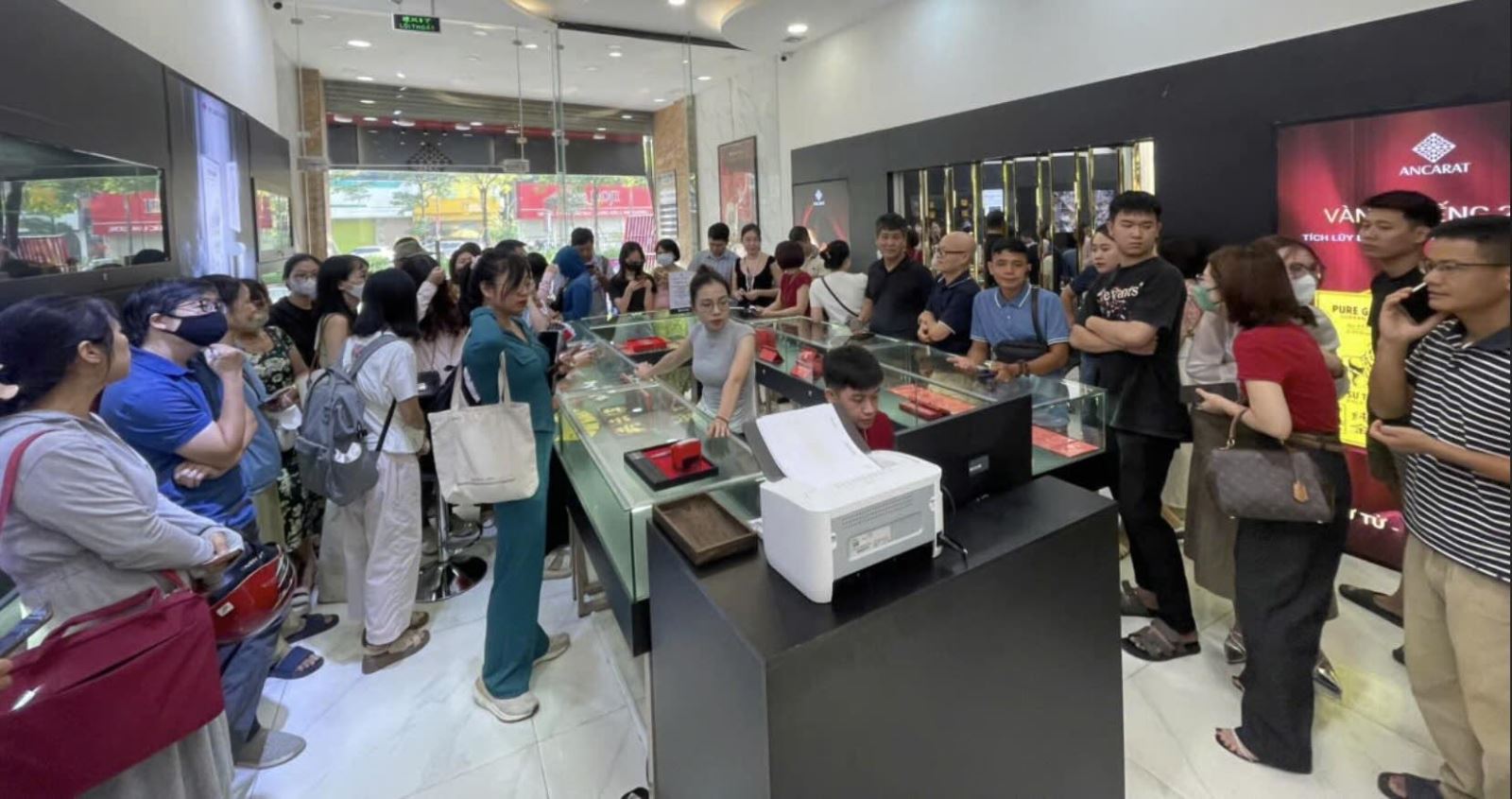Theo ghi nhận của PV, từ đầu giờ sáng, lượng khách đến các cửa hàng bạc trên phố Trần Nhân Tông, Cầu Giấy (Hà Nội) khá đông. Để tránh ùn ứ, nhiều tiệm đã áp dụng hình thức phát số thứ tự, khách đến chỉ cần lấy số và ngồi chờ đến lượt thay vì xếp hàng dài như trước.