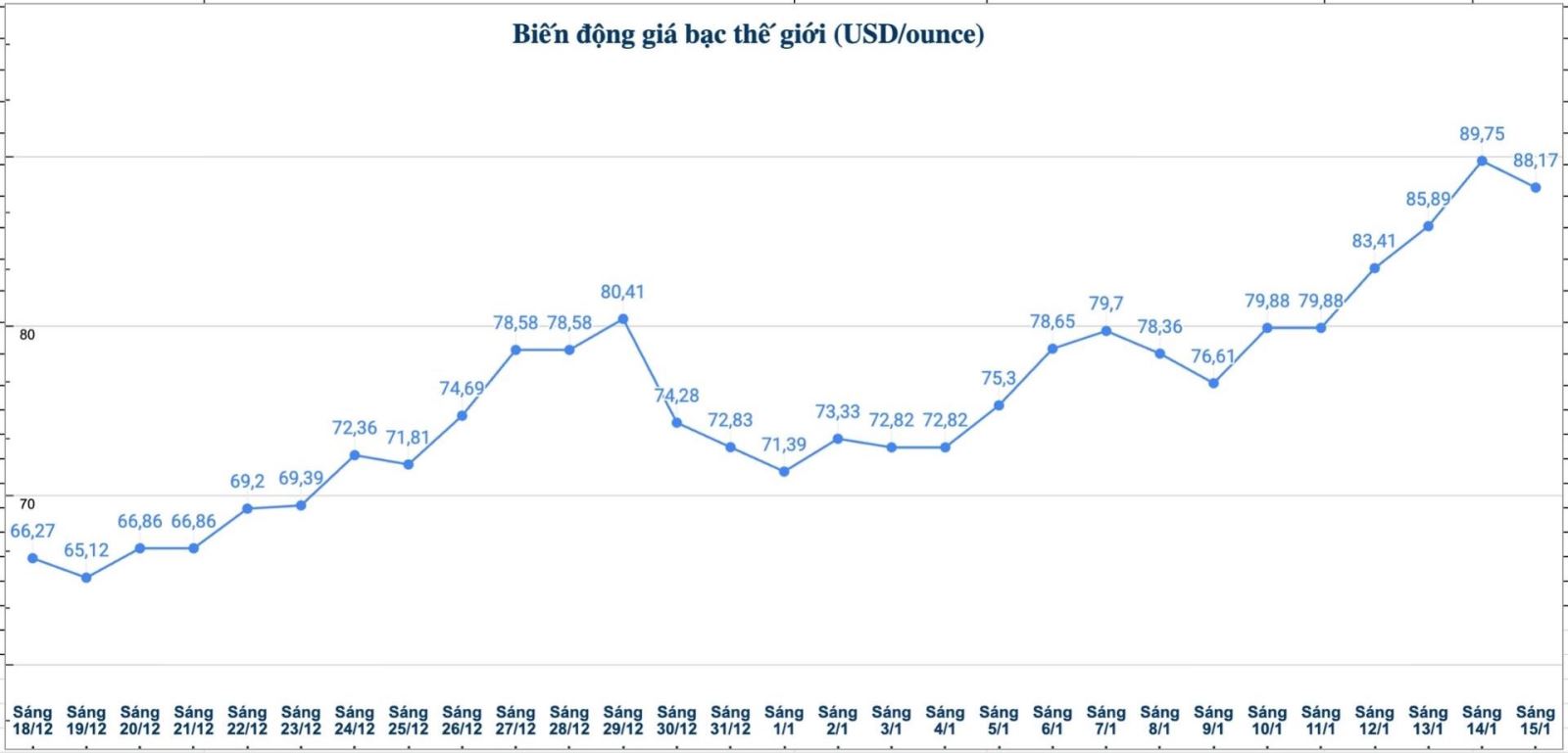 Diễn biến giá bạc thế giới những phiên gần đây. Biểu đồ: Phương Anh