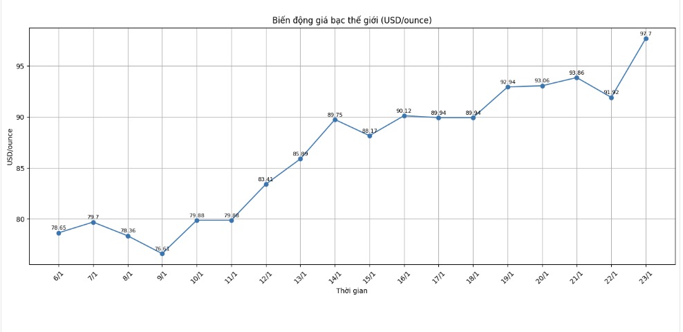 Giá bạc tiếp tục đà tăng được xem là “không thể ngăn cản”, thiết lập mức cao kỷ lục mới trên 95 USD/ounce. Tuy nhiên, ngày càng nhiều chuyên gia phân tích tỏ ra thận trọng hơn với kim loại quý này.