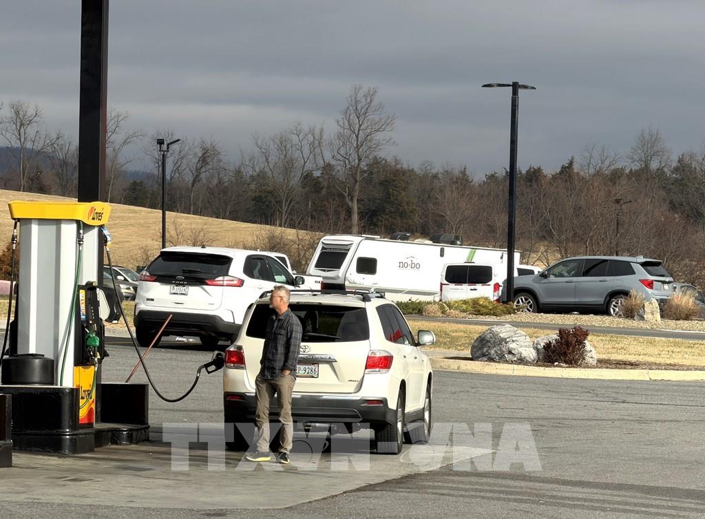 Người dân đổ xăng tại một cây xăng trên đường cao tốc. Ảnh: Ngọc Quang- PV TTXVN tại Mỹ