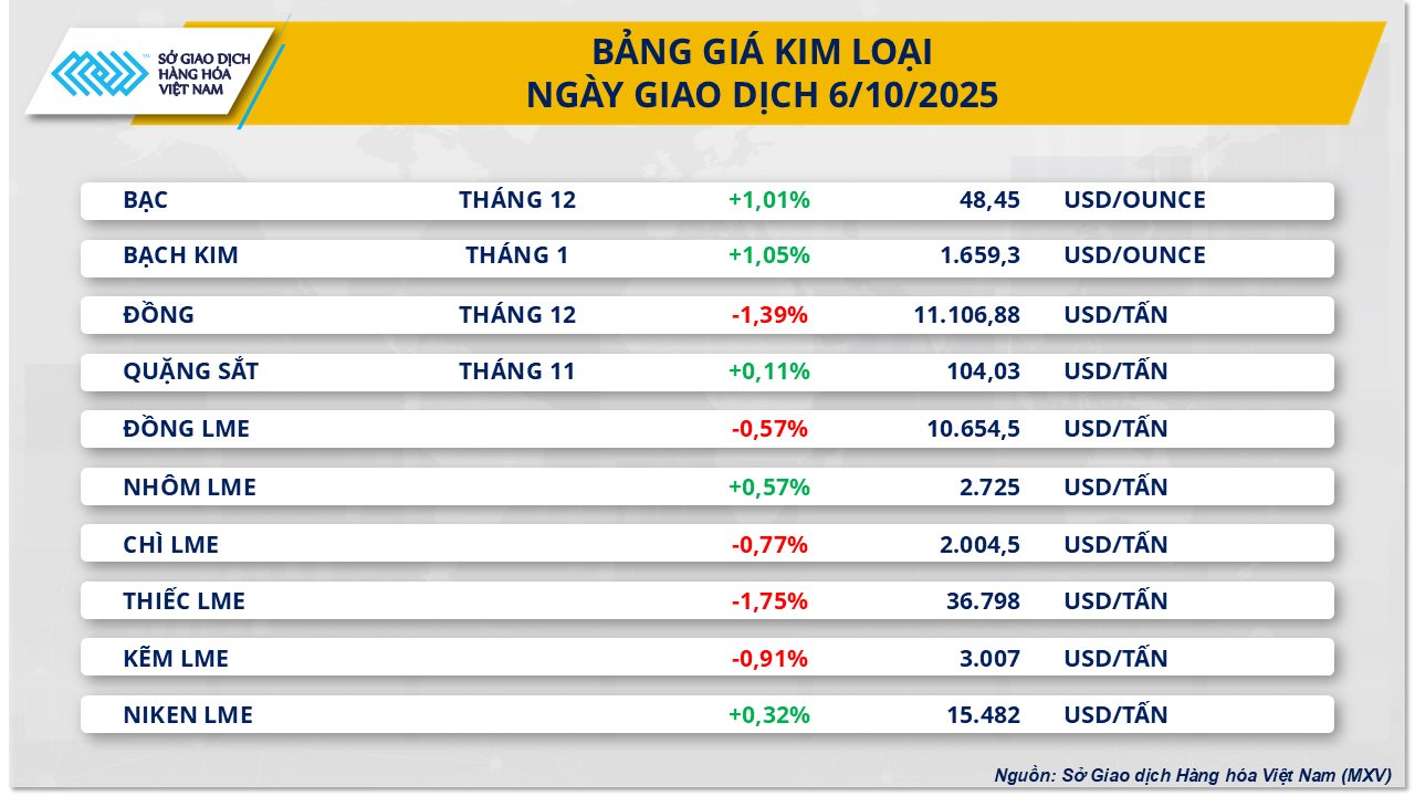 Trong khi đó, trên thị trường kim loại, phiên giao dịch hôm qua chứng kiến những diễn biến phân hóa rõ nét giữa hai nhóm kim loại quý và kim loại cơ bản. Đáng chú ý, giá bạch kim đã leo lên mức cao nhất trong vòng 13 năm trở lại đây giữa bối cảnh thị trường đối mặt với tình trạng thiếu hụt nguồn cung ngày càng nghiêm trọng. Cụ thể, giá bạch kim tiếp tục nhích thêm hơn 1%, đạt mức 1.659 USD/ounce.