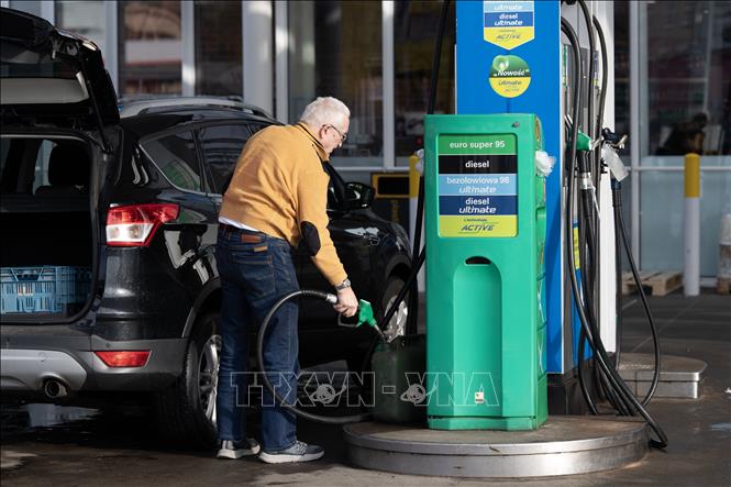 Người dân mua xăng tại một trạm xăng ở Slubice, Ba Lan. Ảnh: THX/TTXVN