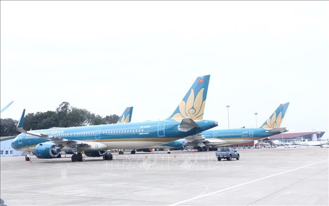 Máy bay của Vietnam Airlines tại sân bay Nội Bài. Ảnh: Huy Hùng/TTXVN