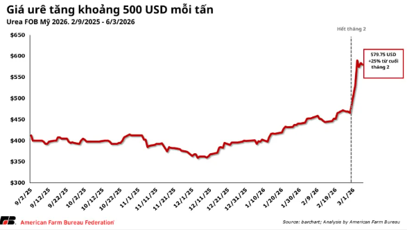 Một yếu tố quan trọng khác là việc eo biển Hormuz - tuyến vận chuyển phân bón lớn của thế giới - gần như bị phong tỏa do căng thẳng quân sự. Eo biển Hormuz có vai trò đặc biệt quan trọng đối với thương mại năng lượng và phân bón toàn cầu. Khoảng 20% nguồn cung dầu mỏ dạng lỏng của thế giới đi qua tuyến đường này. Trung Đông cũng chiếm gần một nửa lượng xuất khẩu urê toàn cầu và khoảng 30% lượng xuất khẩu amoniac.