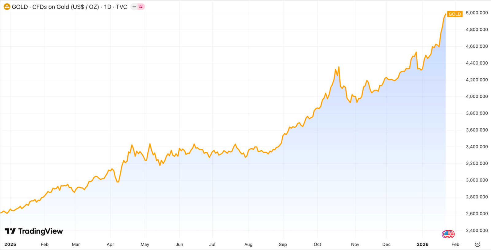 Trước đó, đa phần các tổ chức lớn đều cho rằng vàng có thể đạt 5.000 USD nhưng sớm nhất cũng phải mất vài quý đầu năm 2026. Tuy nhiên, tốc độ tăng giá vàng thực tế nhanh hơn rất nhiều. Đặc biệt, đà tăng diễn ra bất chấp lợi suất trái phiếu Mỹ có giai đoạn neo cao và đồng USD không giảm quá sâu – những yếu tố vốn được xem là “kẻ thù truyền thống” của vàng.