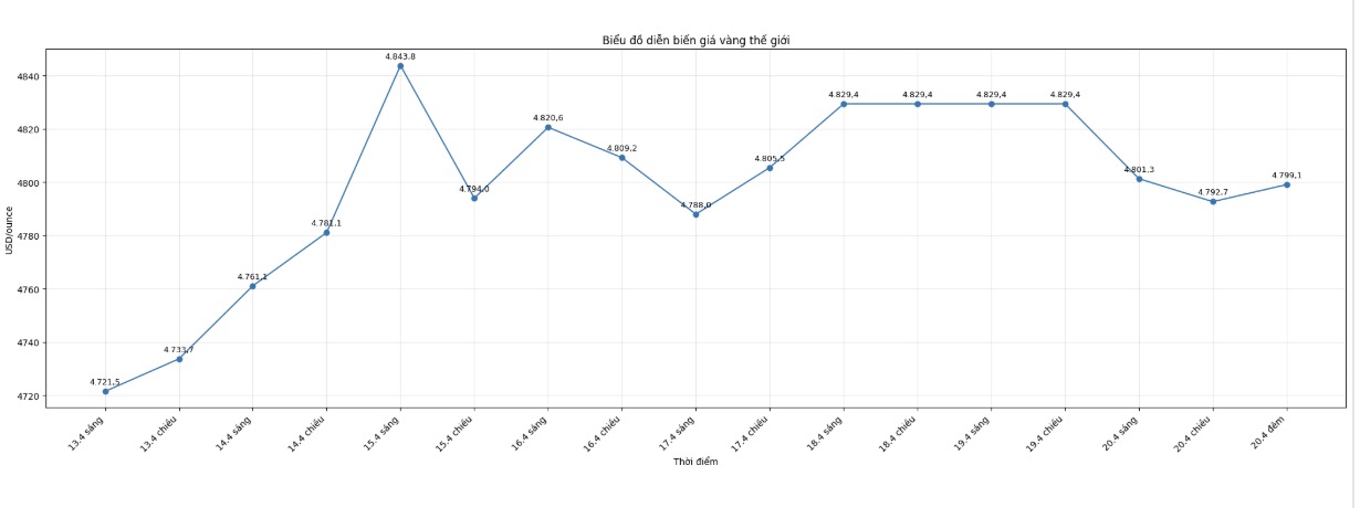 Diễn biến giá vàng thế giới những phiên giao dịch gần đây. Biểu đồ: Khương Duy