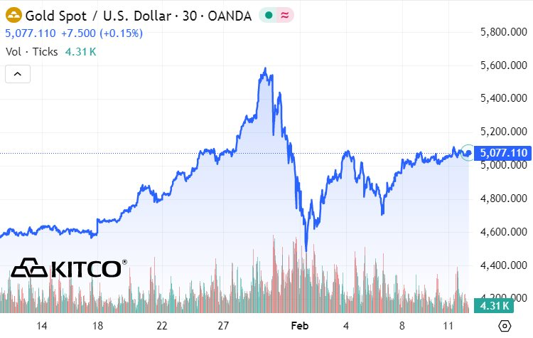 Trên thị trường quốc tế, giá vàng giao ngay hiện giao dịch ở 5.077 USD/ounce, tăng 24,2 USD/ounce so với cùng thời điểm phiên trước. Quy đổi theo tỷ giá của Vietcombank, giá vàng thế giới tương đương 160,2 triệu đồng/lượng (chưa gồm thuế và phí), thấp hơn giá trong nước khoảng 19,8 triệu đồng/lượng.