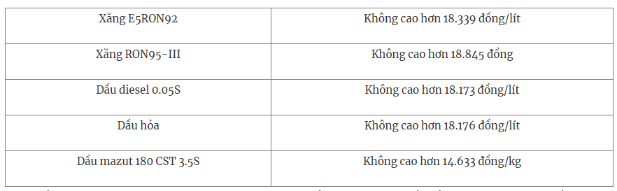 Giá bán lẻ xăng dầu trong nước ngày 1-2 cụ thể như sau: