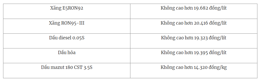 Theo liên bộ, trong kỳ điều chỉnh ngày 6-11, Liên Bộ Công thương - Tài chính không trích lập, không chi sử dụng quỹ bình ổn giá xăng dầu đối với các mặt hàng xăng E5 RON 92, xăng RON95, dầu diesel, dầu hỏa, dầu mazut.