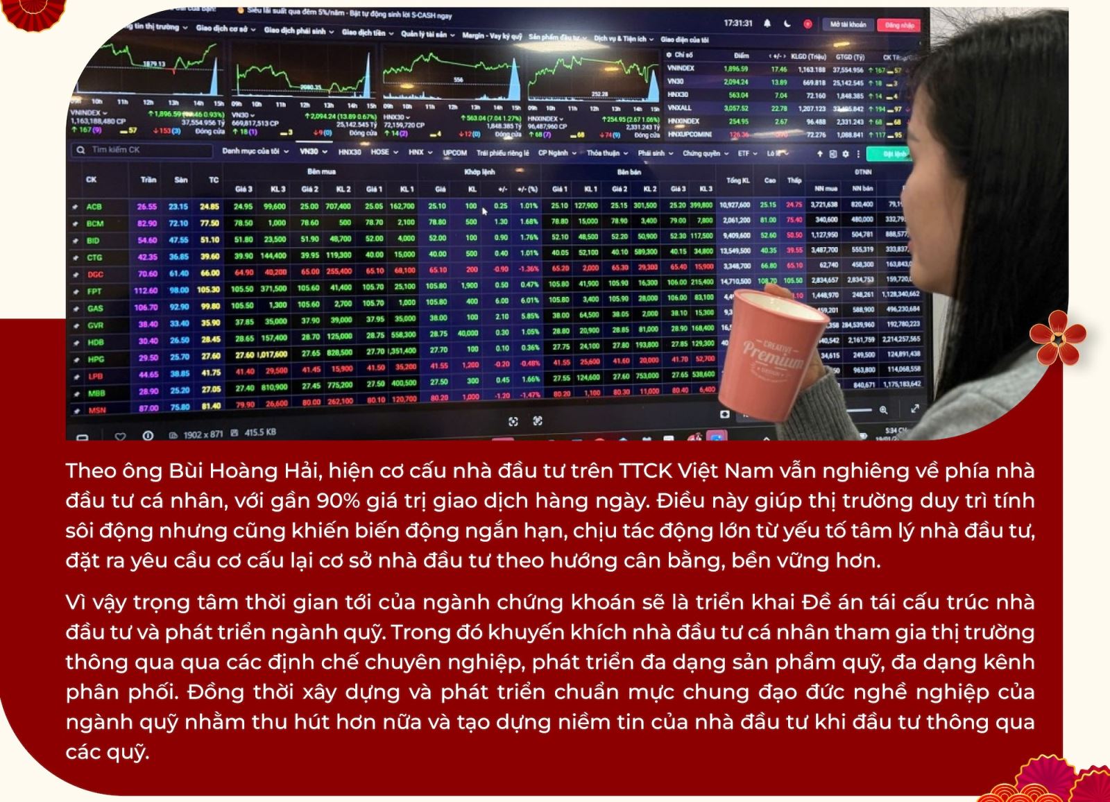 Một yếu tố rất quan trọng mà cá nhân tôi cảm thấy tâm đắc là chuyển biến tích cực, sự nỗ lực hành động của các thành viên thị trường, đặc biệt là các công ty chứng khoán và doanh nghiệp niêm yết. Các công ty chứng khoán đã chủ động nâng cấp hệ thống, năng lực tài chính, quản trị rủi ro, đặc biệt là triển khai giải pháp không yêu cầu có đủ tiền trước khi giao dịch - một điểm then chốt trong tiêu chí nâng hạng, qua đó góp phần cải thiện trải nghiệm nhà đầu tư nước ngoài.