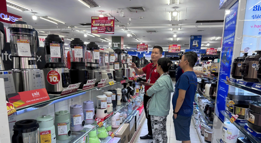 Từ đầu tháng 11-2025, các trung tâm bán lẻ lớn như Điện máy Xanh, Nguyễn Kim, Chợ Lớn, Gia Thành, FPT Shop... đồng loạt triển khai chương trình giảm giá 30%-60%, tặng kèm quà Tết, phiếu mua hàng, bao lắp đặt miễn phí và trả góp lãi suất 0%.
