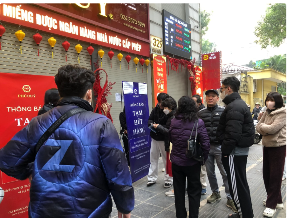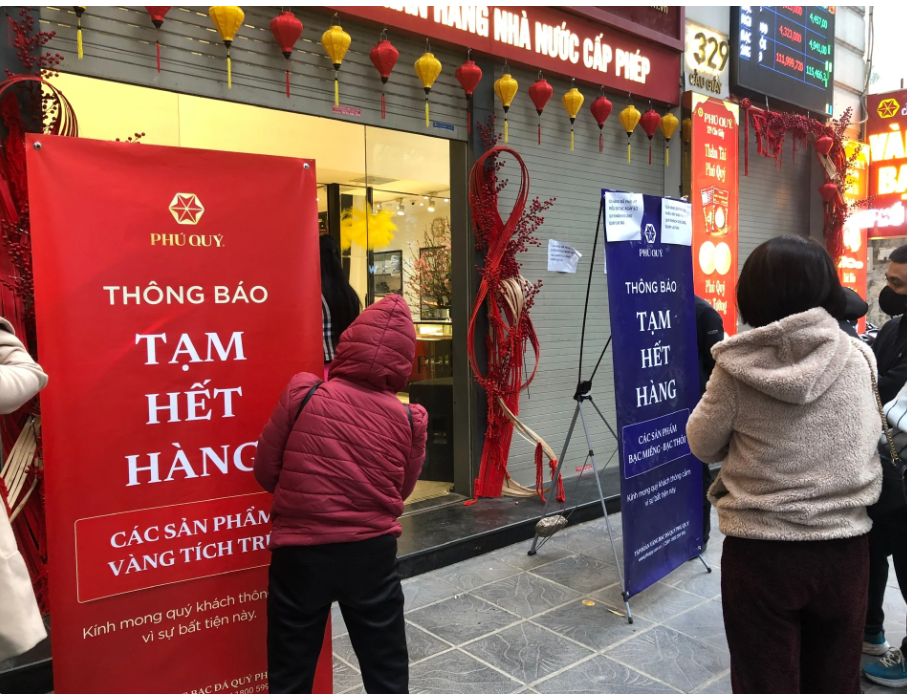 Theo ghi nhận của phóng viên Tạp chí Đầu tư Tài chính, ngay từ sáng sớm ngày 4/2, nhiều cửa hàng kinh doanh vàng bạc, đá quý trên địa bàn Hà Nội đã rơi vào tình trạng quá tải, chật kín người xếp hàng chờ mua vàng. Dù chưa đến 8h sáng, nhiều cửa hàng đã phải thông báo tạm ngừng phát số do nguồn cung vàng không còn.