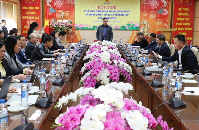 Chiều 2-2, Bộ Y tế tổ chức hội nghị phổ biến Nghị định 46/2026/NĐ-CP ngày 26-1-2026 quy định chi tiết thi hành một số điều và biện pháp để tổ chức, hướng dẫn thi hành Luật An toàn thực phẩm và Nghị quyết 66.13/2026/NQ-CP ngày 27-1-2026 quy định về công bố, đăng ký sản phẩm thực phẩm.