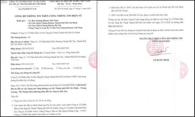 Theo đó, CII đã không công bố thông tin đối với các tài liệu:Báo cáo tình hình sử dụng nguồn vốn từ phát hành trái phiếu bán niên 2021; Báocáo tình hình sử dụng nguồn vốn từ phát hành trái phiếu năm 2020; BCTC bán niên2021; BCTC năm 2020; Tình hình thanh toán lãi, gốc trái phiếu bán niên 2021;Báo cáo tình hình sử dụng số tiền từ phát hành trái phiếu được kiểm toán bánniên 2023.