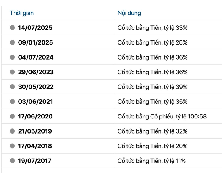 Mức tạm ứng hiện tại vẫn thấp hơn đáng kể so với tổng tỷ lệ chia 58% trong năm 2024, đồng thời tiệm cận mặt bằng cổ tức giai đoạn 2022-2023 khi Công ty duy trì tỷ lệ 36%.