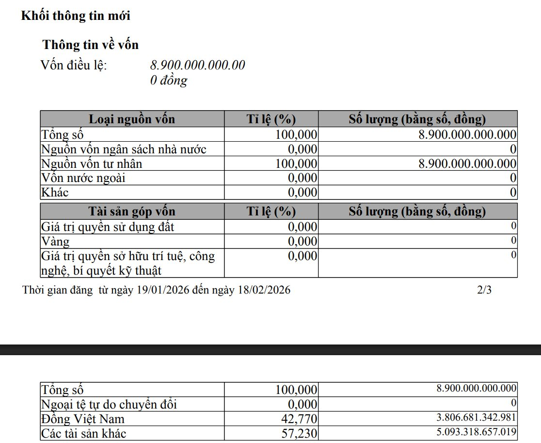 Sau thay đổi này, vốn điều lệ công ty tăng từ 7.900 tỷ đồng lên 8.900 tỷ đồng.